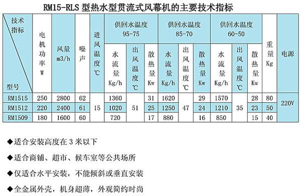 RM-S系列熱風幕機是以熱水為熱媒,以冷水為冷媒換熱器采用STTL型節能換熱器,換熱效率高,空氣阻力小。分為熱水型和冷熱水型兩種機型,熱水型冬季使用熱水吹熱風,夏季吹自然風;冷熱水型冬季使用熱水吹熱風,夏季使用冷水吹冷風。