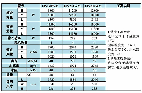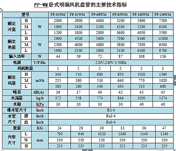 FP-WM臥式明裝風機盤管是專為辦公室、家庭、別墅、餐廳、門店等場所推出的一種新型風機盤管。它的機外靜壓為30Pa,設計風量為340m3/h—2380 m3/h。額定冷量為2-13KW,額定熱量為3.2-20KW,單臺適用于13-90平米的房間。臥式明裝盤管表面采用靜電噴涂處理,色彩高雅,外形美觀,可理想的吊裝在天花板下任何位置,不過多占用室內面積,便于安裝,可與室內裝飾相稱,特別適用于舊建筑的空氣調節工程改造,可減少管道,節約費用。