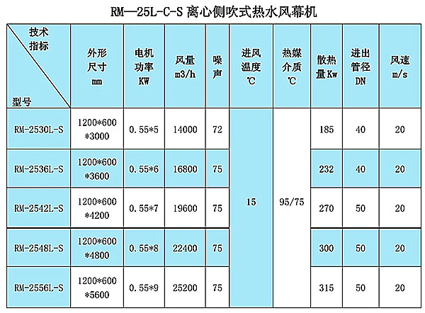 RM25-L-C-S(Q)離心側吹式風幕機可以以熱水或蒸汽為熱媒,是外形尺寸大、阻斷效果好的裝配式機型。該機型適合安裝在高度3米以上,寬度6米以內的門洞側面。適用于大型的倉庫、廠房的高大門洞使用,正常選擇雙側吹風方式,門洞寬度小于2.5米時可以選用單側吹風。