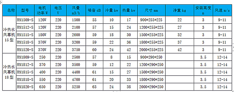 RM-S系列熱風幕機是以熱水為熱媒,以冷水為冷媒換熱器采用STTL型節(jié)能換熱器,換熱效率高,空氣阻力小。分為熱水型和冷熱水型兩種機型,熱水型冬季使用熱水吹熱風,夏季吹自然風;冷熱水型冬季使用熱水吹熱風,夏季使用冷水吹冷風。