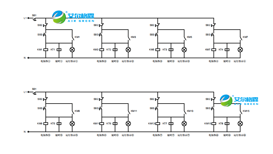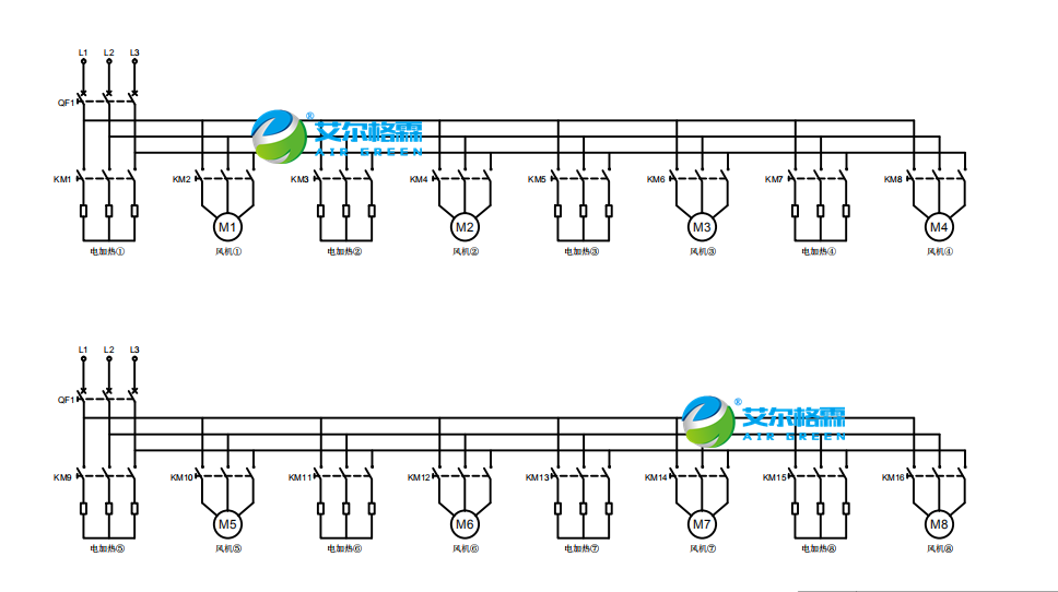 D10電加熱工業暖風機的控制原理圖,由艾爾格霖工業暖風機原創,未經許可,請勿轉載