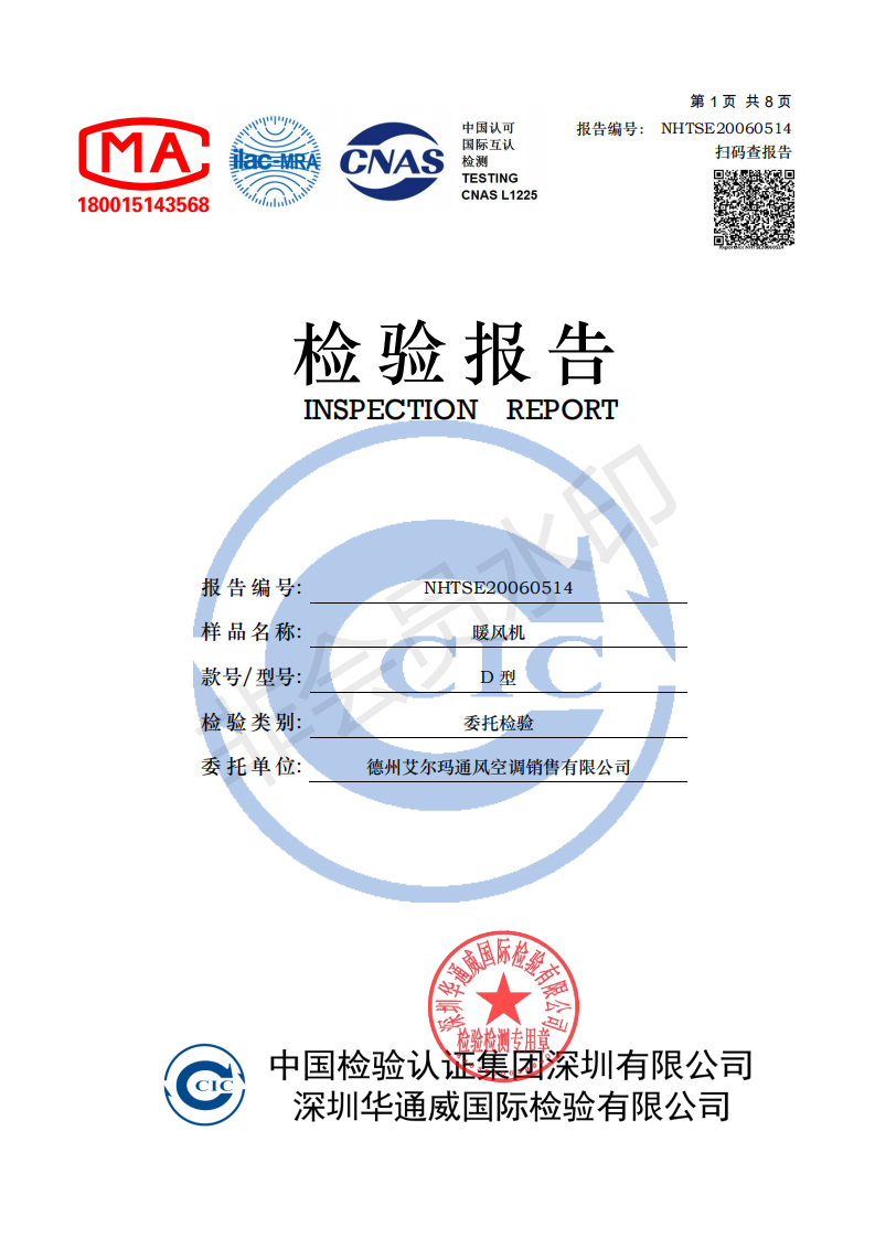 艾爾格霖工業暖風機系列產品順利通過第三方檢測