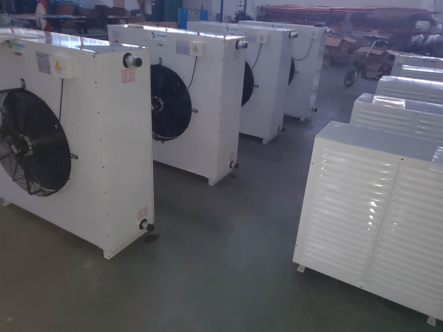日前,艾爾格霖為東北客戶研發訂制的10TS型100KW熱水暖風機完成生產調試。10TS熱水暖風機,出風口尺寸達1200*1200mm,風量10400m3/h,散熱量100KW。