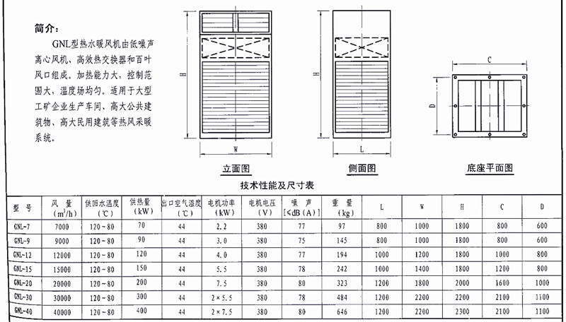 GNL型熱水暖風機由低噪聲離心風機,高效熱交換器和百葉風口組成,加熱能力大,控制方位大,溫度場均勻,適用于大型工礦企業生產車間,高大公共建筑物、高大民用建筑等熱風采暖系統。