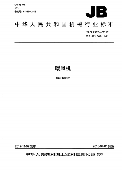 新的暖風機行業標準代替了原有的JB/T7225-1994,相比舊標準,主要的技術變化如下: