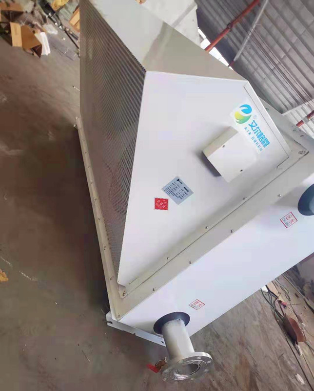 7TS-II超溫散熱器,將兩臺7TS型熱水暖風機組合,采用兩臺6600m3/h風量外轉子軸流風機,銅管鋁翅片加熱器,外設專用防雨罩,風量可達12000m3/h,散熱量100KW。